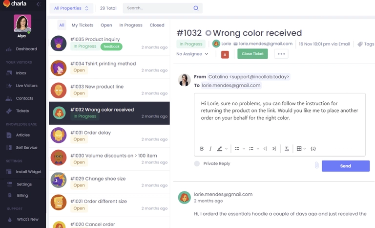 The ease of navigation in Charla ensures users can find what they need quickly. The agent dashboard is straightforward, allowing agents to respond to inquiries efficiently. The multi-site support feature makes it easy to manage multiple stores from one inbox, ensuring a smooth workflow.