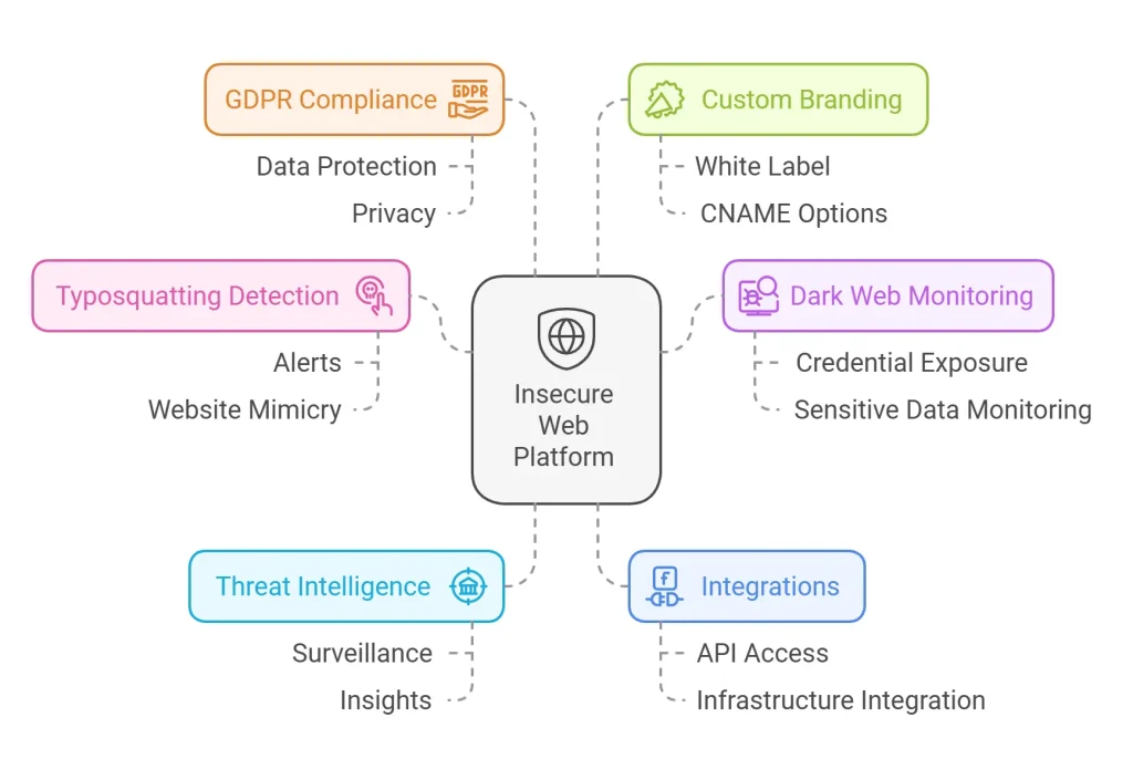 Insecure Web offers a range of powerful features to enhance your brand’s security with proactive digital surveillance. Below are the key features that make Insecure Web a vital tool for businesses aiming to protect against cyber threats.