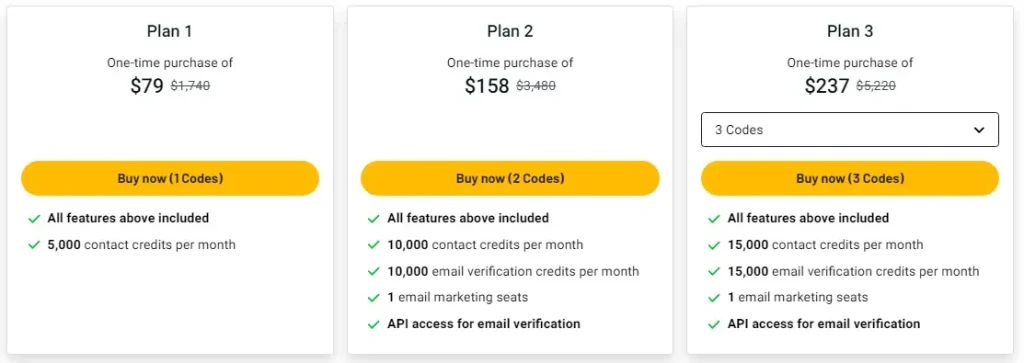 | Plan 3 | $237 (One-time payment, lifetime deal) |